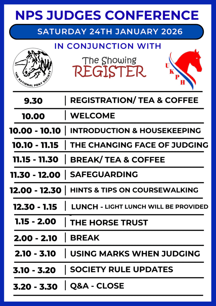 TSR/NPS/UKPH Judges Conference – Saturday 24th January 2026, at Stoneleigh Park.